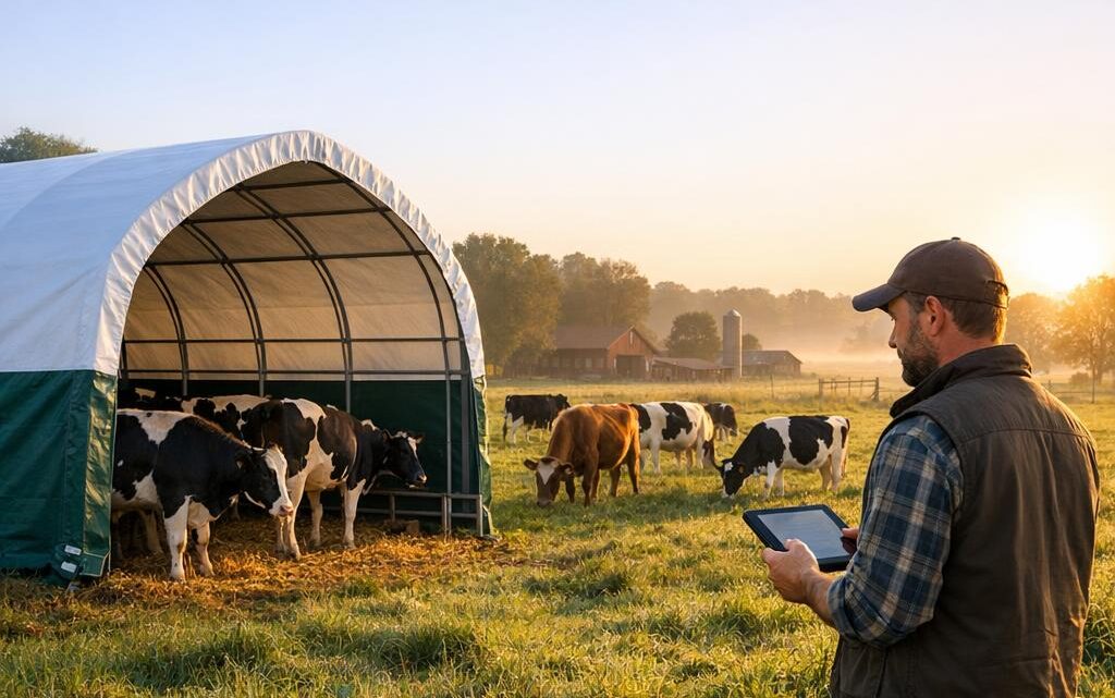 Mobile Weidezelte mit integrierter Beleuchtung und Belüftung bieten Komfort und Sicherheit. Automatische Torsteuerungen und Überwachungskameras erhöhen die Kontrolle und reduzieren Arbeitsaufwand. Investitionen in solche Technologien zahlen sich durch verbesserte Tiergesundheit und Arbeitsentlastung aus.